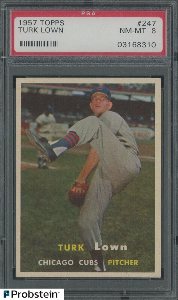 1957 Topps #247 Turk Lown Chicago Cubs PSA 8 NM-MT