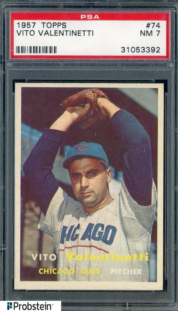 1957 Topps #74 Vito Valentinetti Chicago Cubs PSA 7 NM