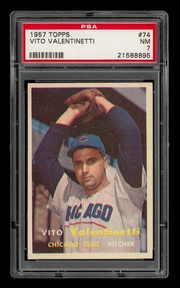 1957 Topps Set-Break # 74 Vito Valentinetti PSA 7 NM