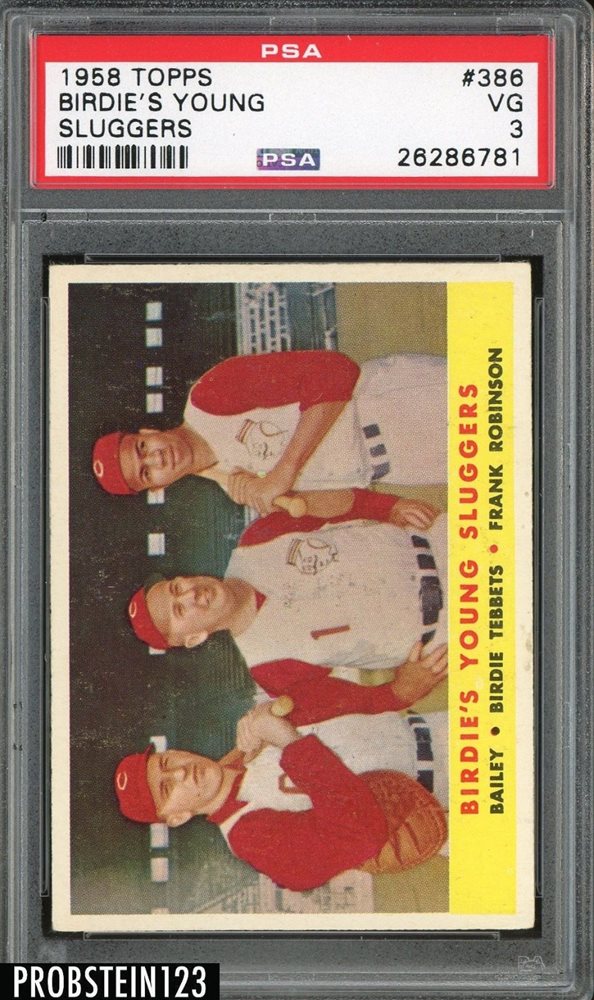 1958 Topps #386 Birdie's Young Sluggers Reds w/ Frank Robinson PSA 3 VG