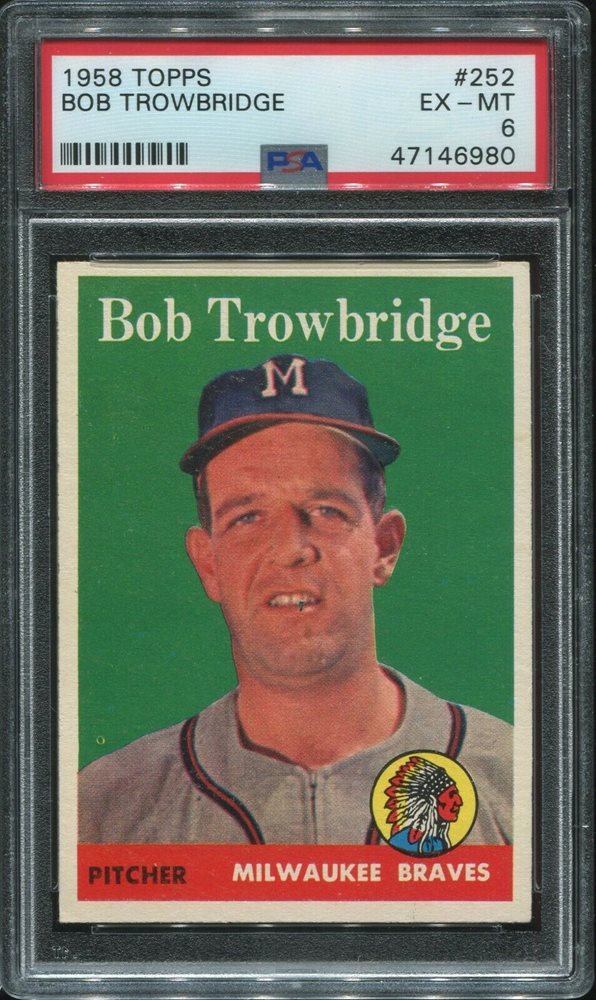 1958 Topps # 252 Bob Trowbridge PSA 6 EX-MT Milwaukee Braves