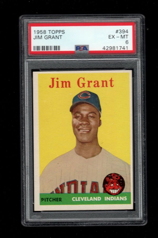 1958 Topps BB Card #394 Jim Mudcat Grant Cleveland Indians RC PSA EX-MT 6 !!