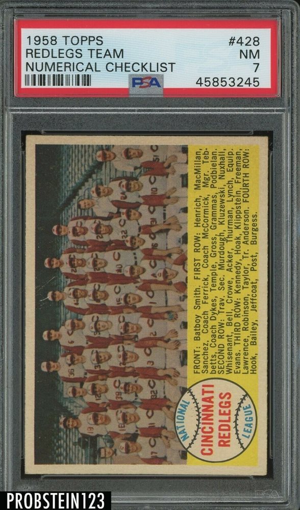 1958 Topps #425 Cincinnati Redlegs Team Numerical Checklist PSA 7 NM