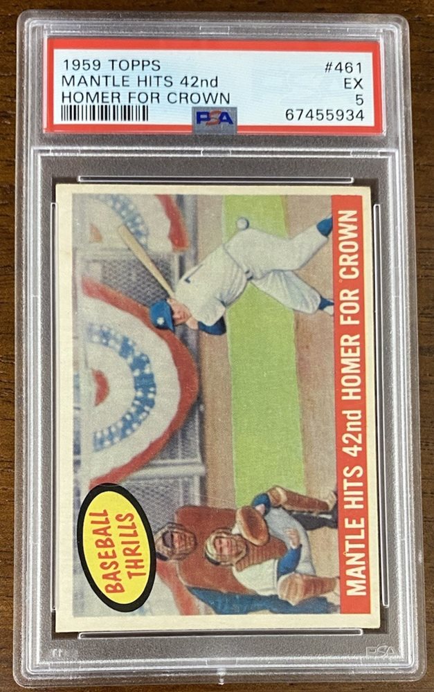 1959 TOPPS MICKEY MANTLE MANTLE HITS 42ND HR CARD #461 GRADED PSA 5 READ DESC