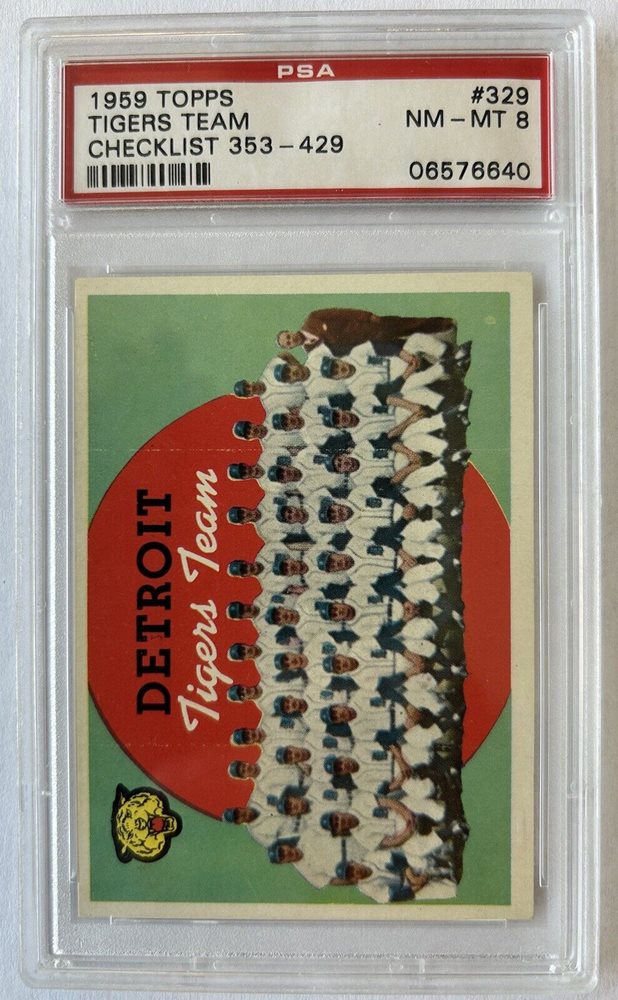 1959 Topps Tigers Team Checklist #329 PSA 8 - Only 35 Higher