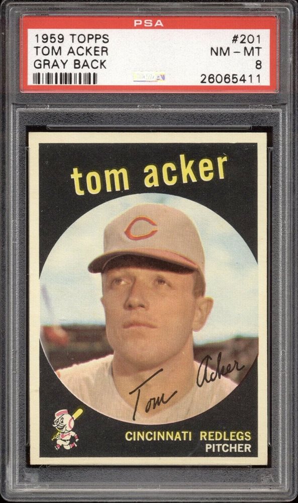 1959 Topps #201 Tom Acker -- PSA 8 -- Cincinnati REDLEGS REDS -- centered & bold