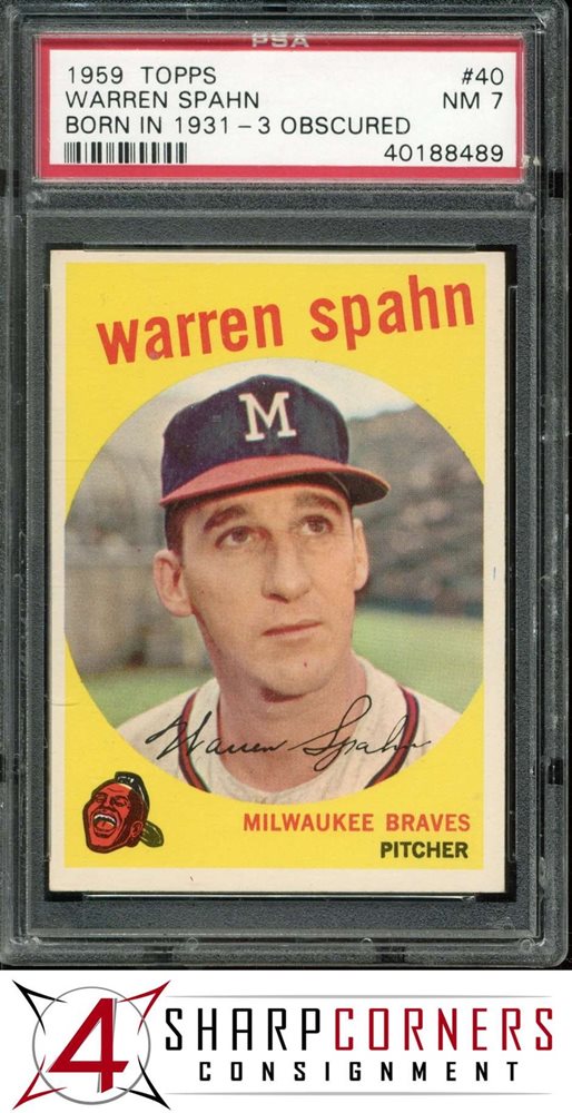 1959 TOPPS #40 WARREN SPAHN HOF BORN IN 1931-3 OBSCURED PSA 7