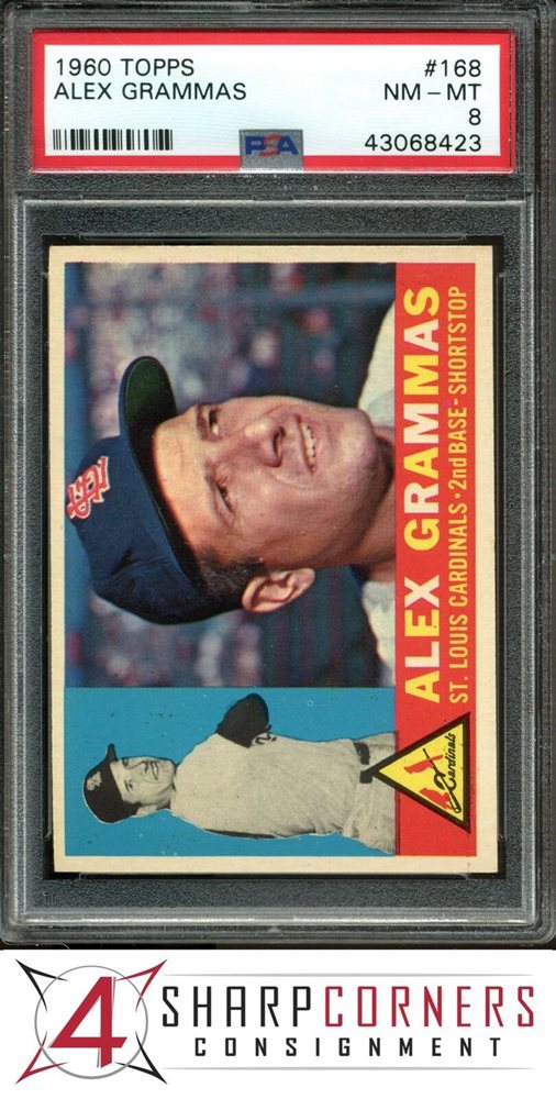 1960 TOPPS #168 ALEX GRAMMAS CARDINALS PSA 8