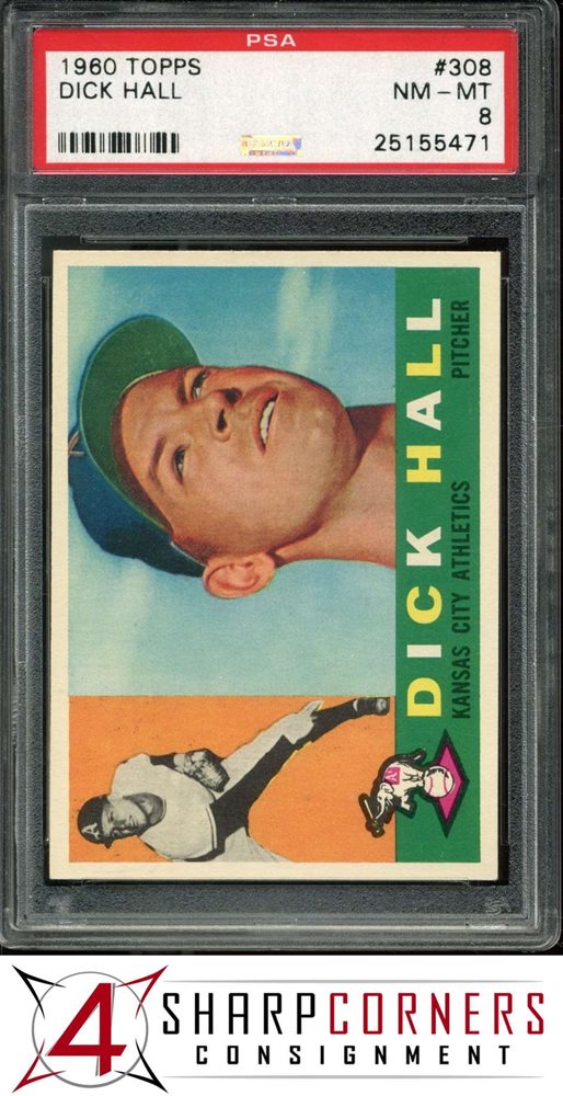 1960 TOPPS #308 DICK HALL ATHLETICS PSA 8