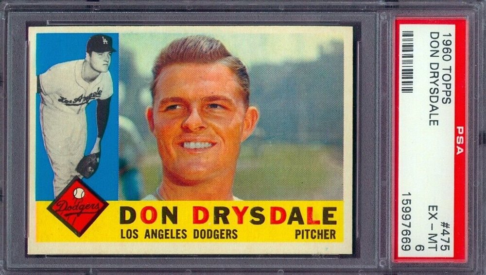 1960 TOPPS #475 DON DRYSDALE (DODGER/HOF) PSA 6 !!