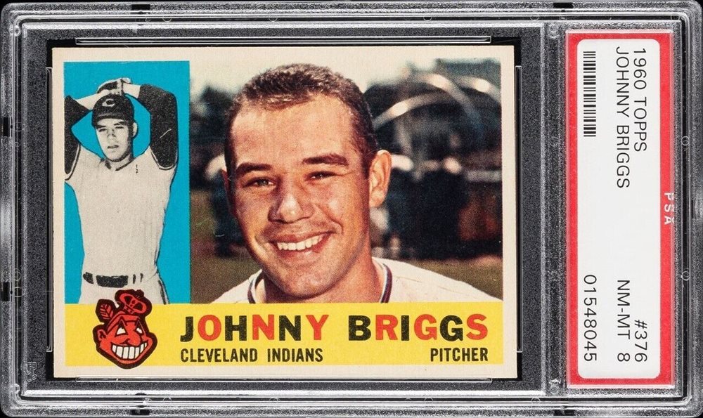 1960 Topps Set Break #376 Johnny Briggs Cleveland Indians PSA 8 NM-MT 01548045