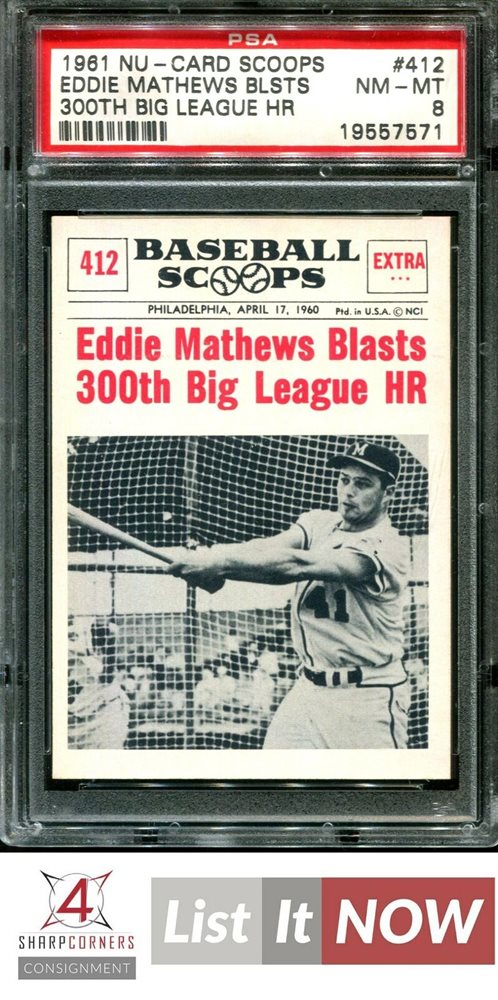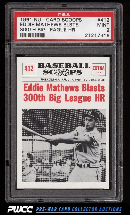 Auction Prices Realized Baseball Cards 1961 NU-CARD SCOOPS Eddie Mathews Blsts