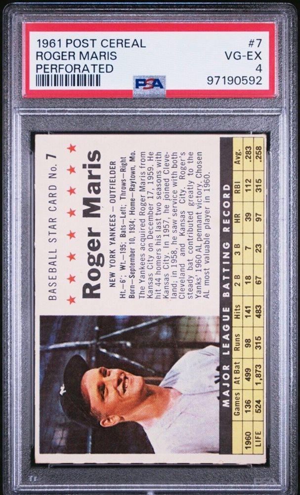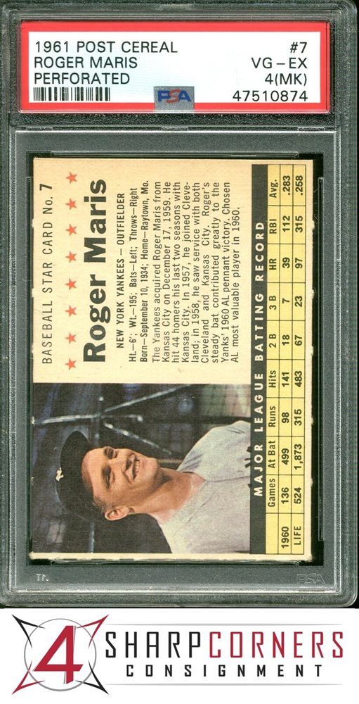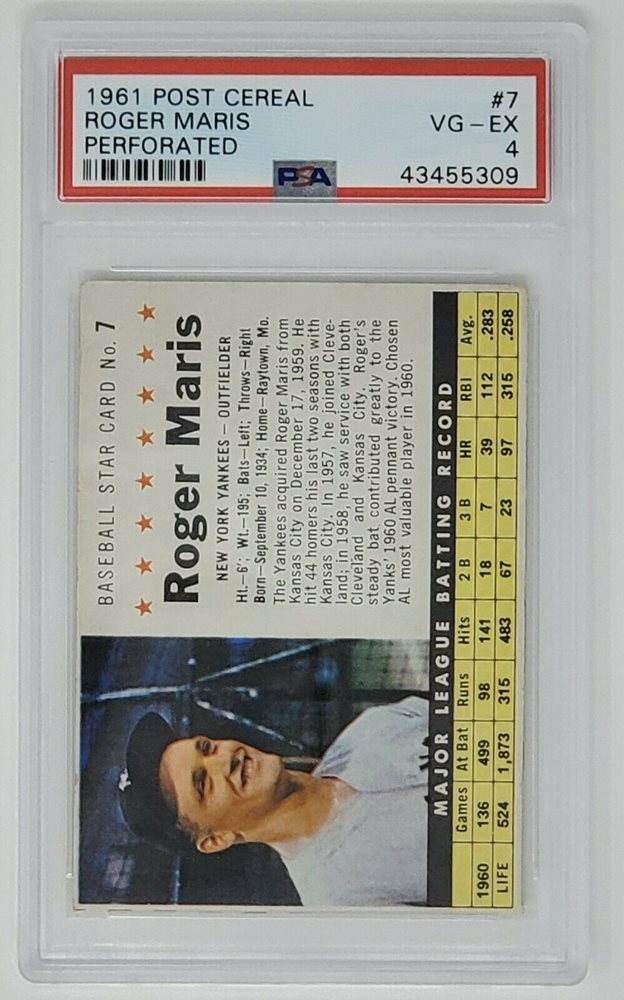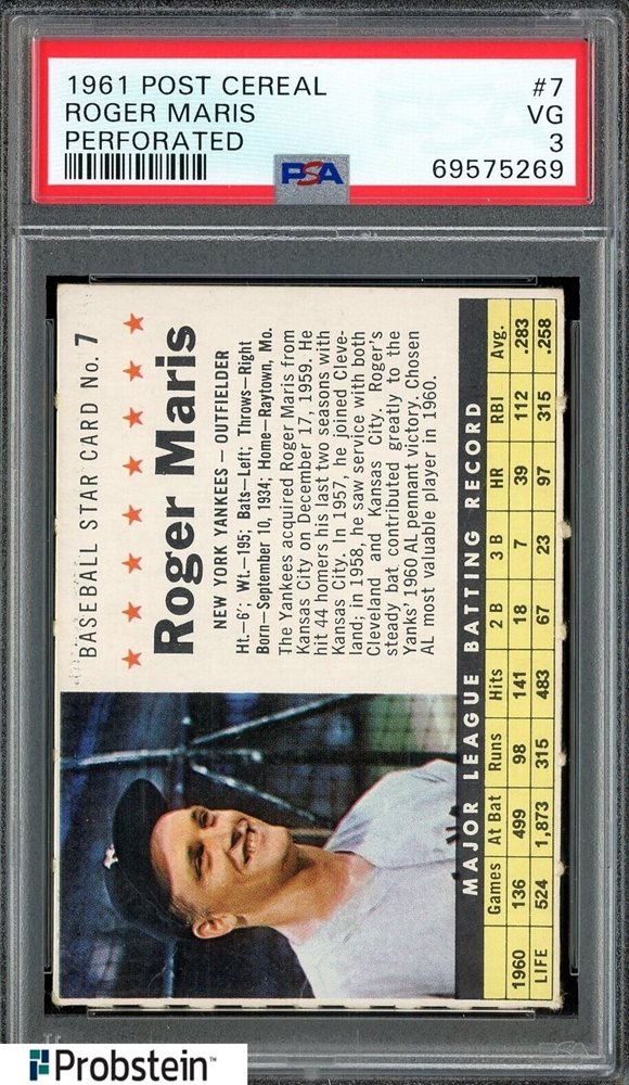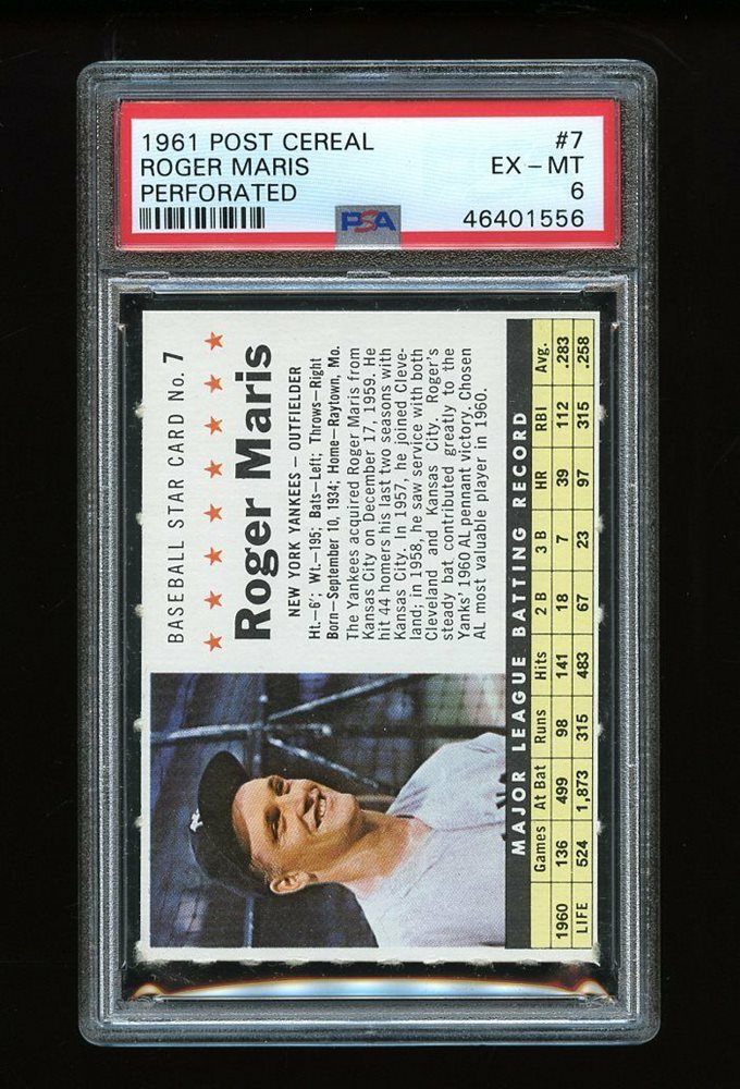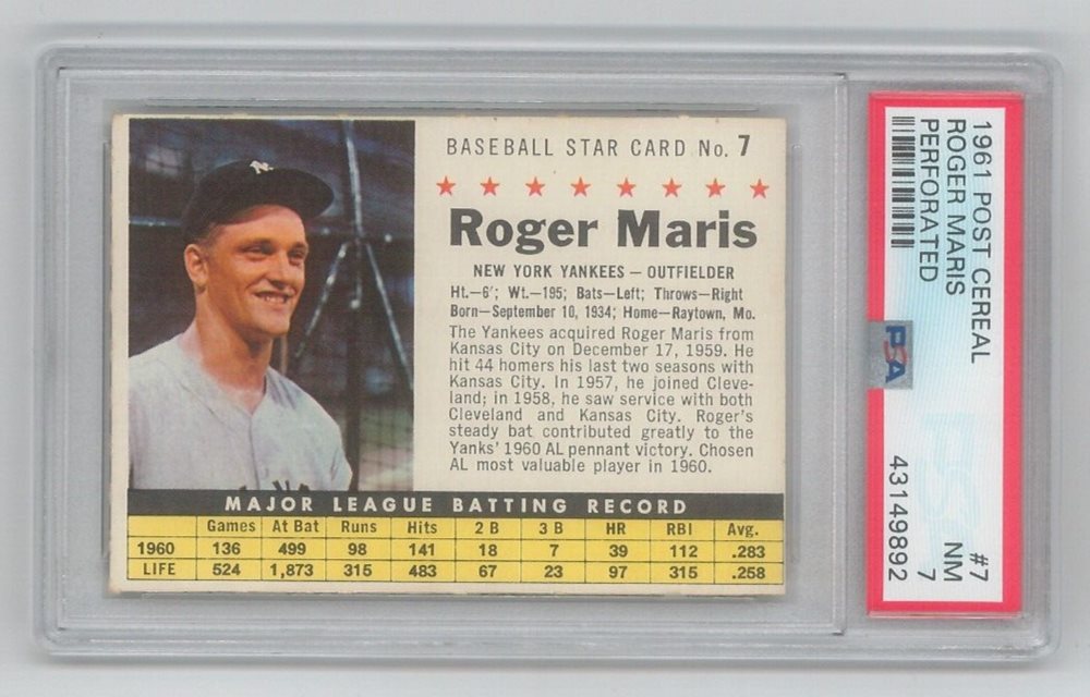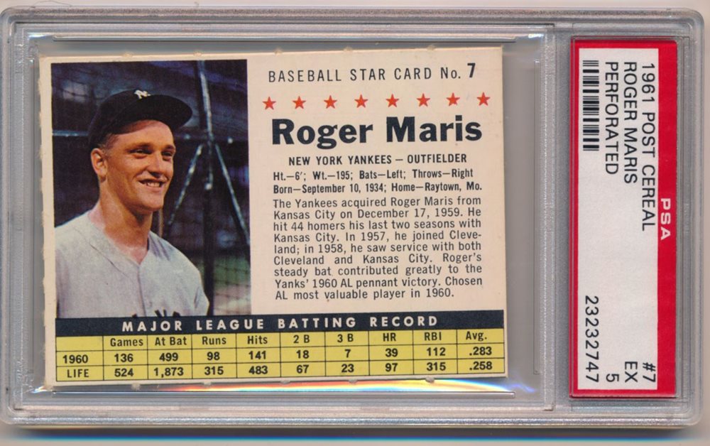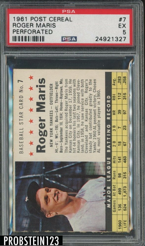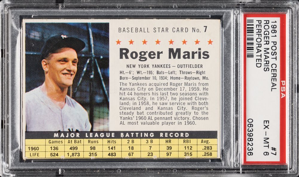 Auction Prices Realized Baseball Cards 1961 POST CEREAL Roger Maris