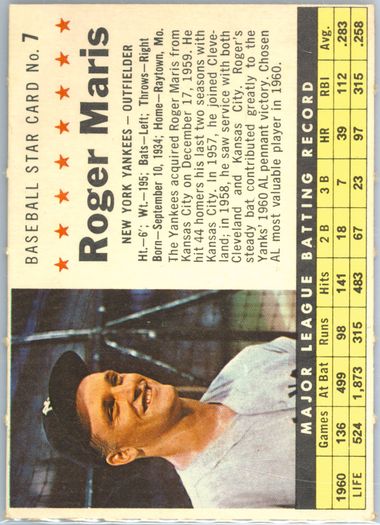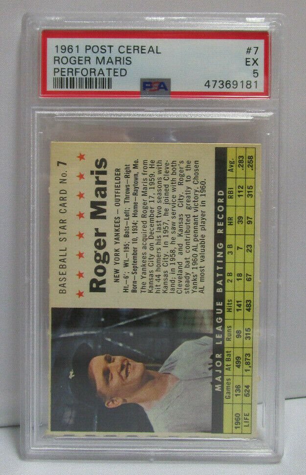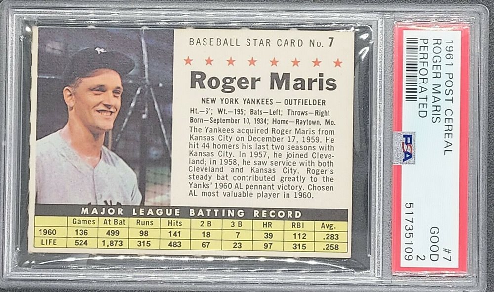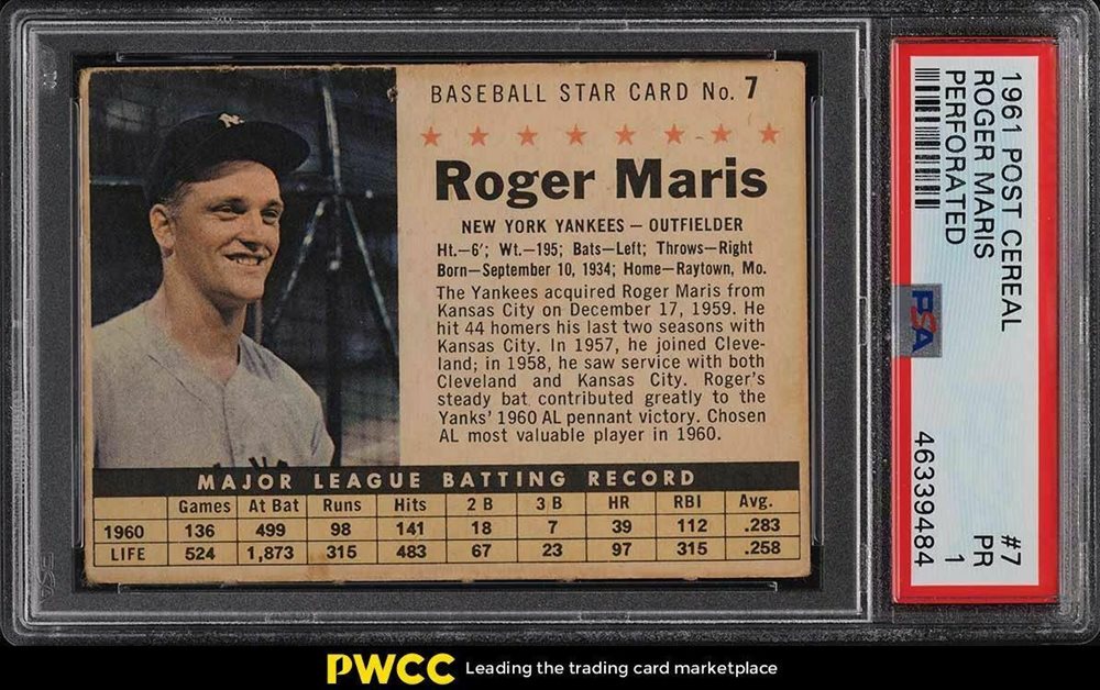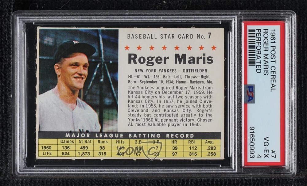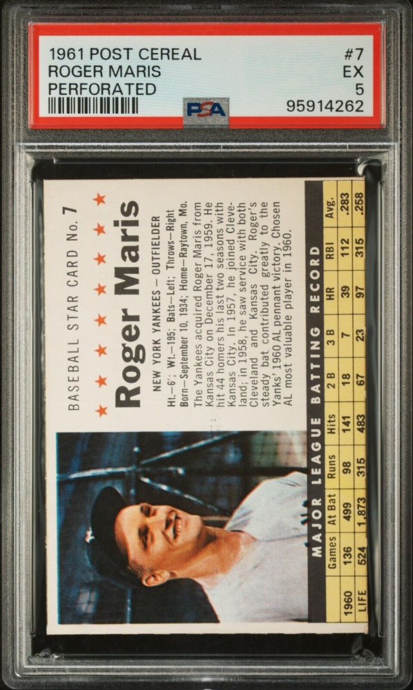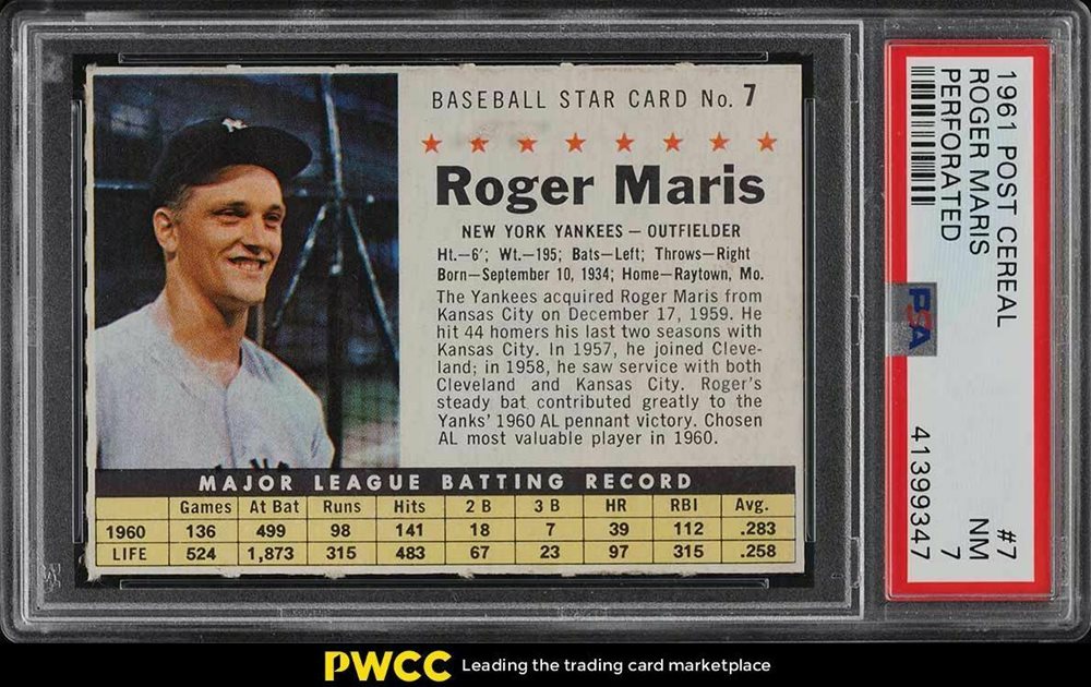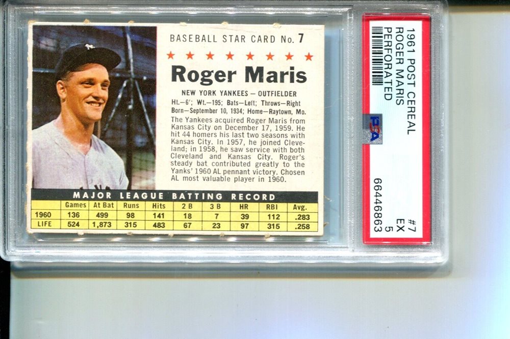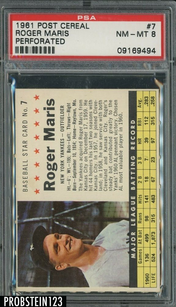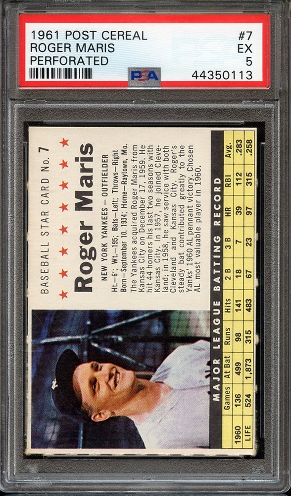 Auction Prices Realized Baseball Cards 1961 POST CEREAL Roger Maris