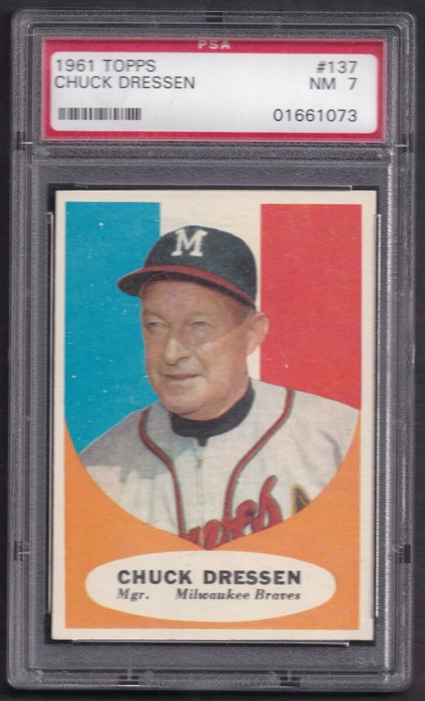 1961 TOPPS BASEBALL CHUCK DRESSEN #137 PSA 7 NRMINT MILWAUKEE BRAVES
