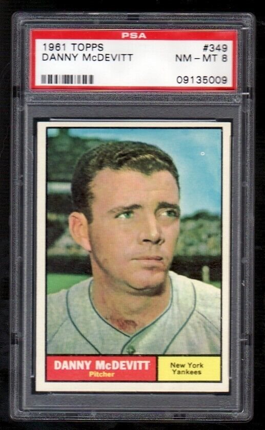 1961 Topps #349 Danny McDevitt - PSA 8 NEAR MINT-MINT - New York Yankees