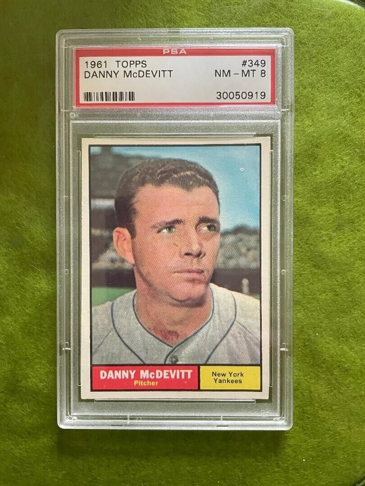 1961 Topps Baseball #349 Danny McDevitt NY New York Yankees PSA 8 NM-MT