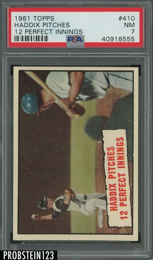 1961 Topps #410 Haddix Pitches 12 Perfect Innings PSA 7 NM