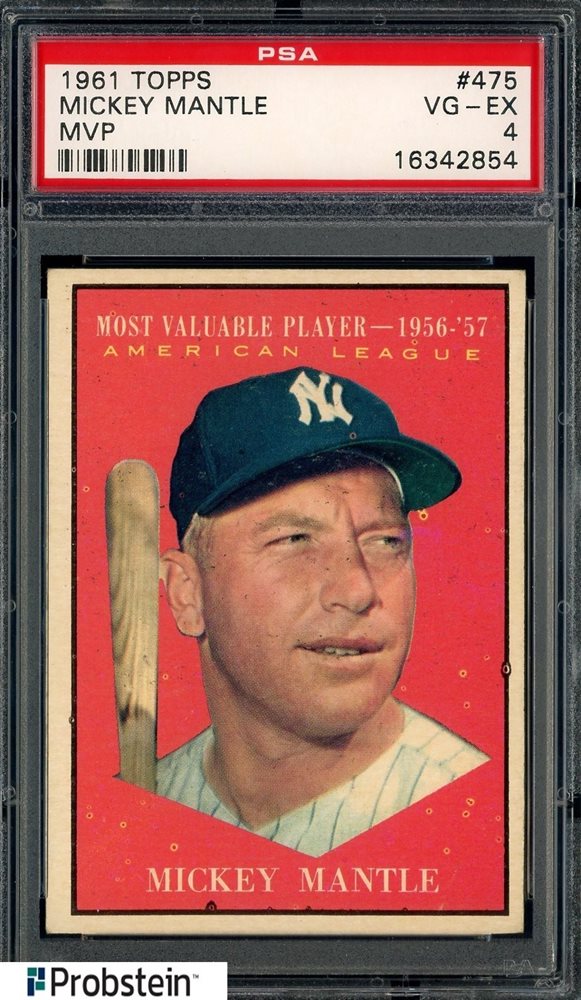 1961 Topps MVP #475 Mickey Mantle New York Yankees HOF PSA 4 VG-EX