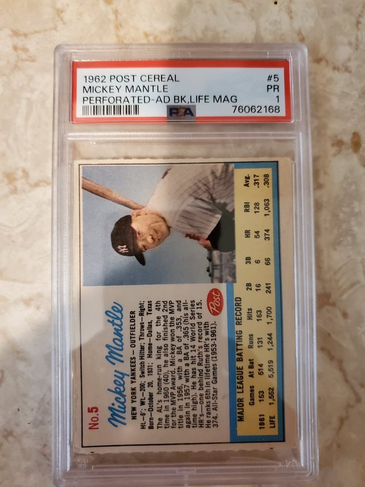 1962 Post Cereal #5 - Mickey Mantle (Ad on Back Life Mag) - PSA 1