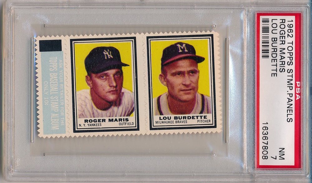 1962 Topps Stamp Panels Roger Maris & Lou Burdette PSA 7