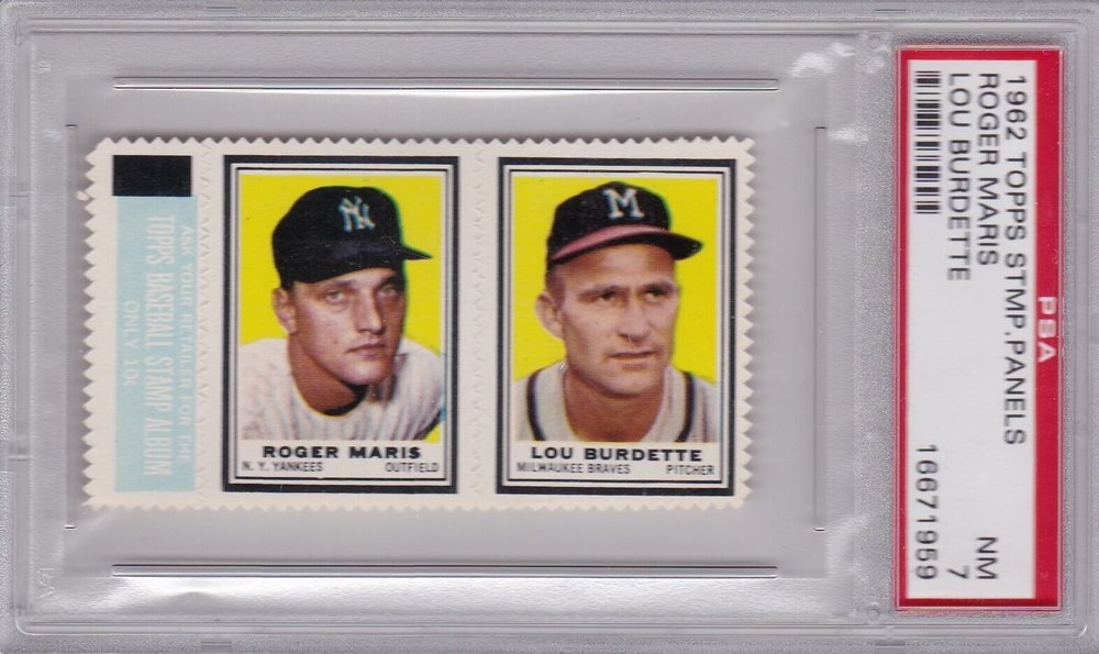 1962 Topps Baseball Stamp Panel Roger Maris/Lou Burdette PSA 7 Near Mint