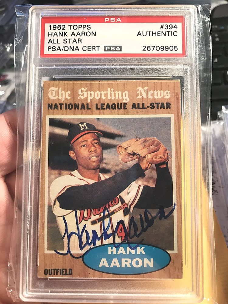 PSA 1962 TOPPS #394 HANK AARON ALL STAR AUTO ON CARD ORIGINAL VERY NICE HIGH END