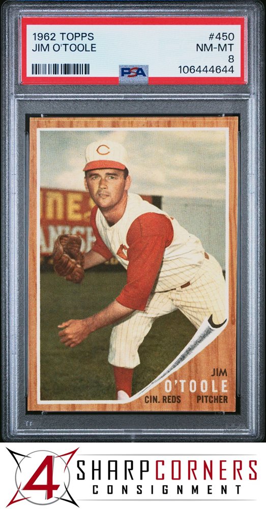1962 TOPPS #450 JIM O'TOOLE REDS PSA 8