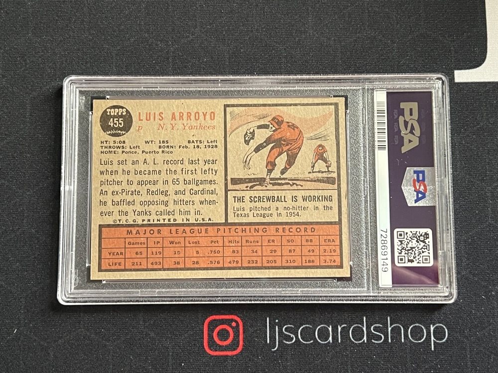 1962 Topps Luis Arroyo #455 PSA 6 EX-MT New York Yankees J1