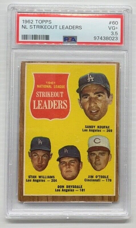 1962 Topps Sandy Koufax Stan Williams Don Drysdale Jim O'Toole #60 PSA 3.5