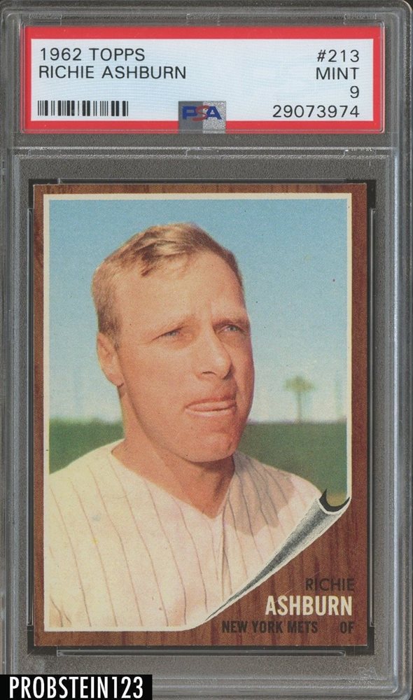 1962 Topps #213 Richie Ashburn New York Mets HOF PSA 9 " RAZOR SHARP "