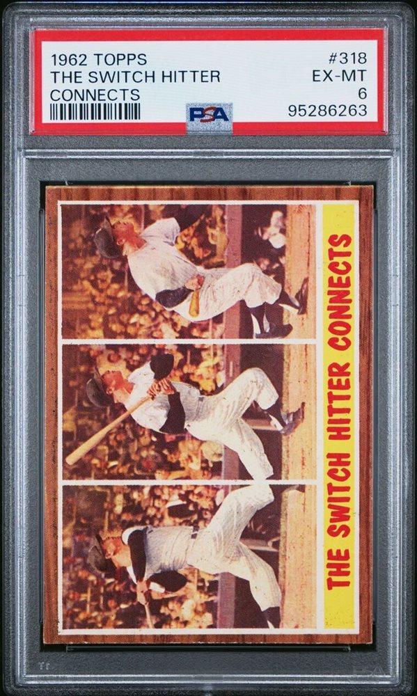 1962 Topps Mickey Mantle The Switch Hitter Connects #318 PSA 6 New York Yankees