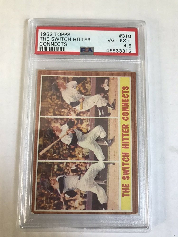 1962 Topps Mickey Mantle The Switch Hitter Connects #318 PSA 4.5 VG - EX+