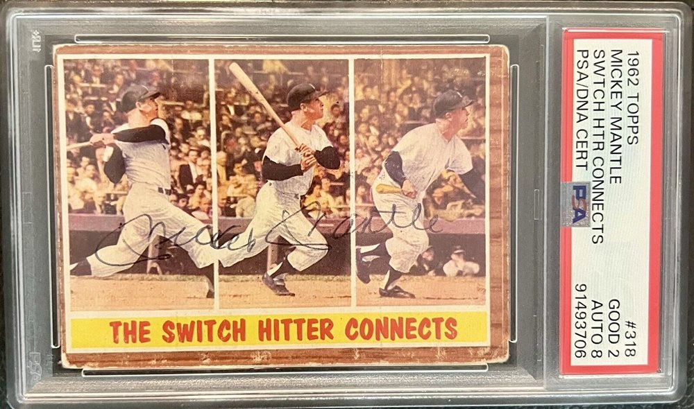 1962 TOPPS MICKEY MANTLE SWITCH HITTER CONNECTS #318 AUTOGRAPH SIGNED PSA/DNA