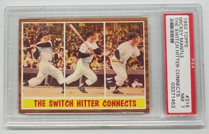 1962 Topps Mickey Mantle The Switch Hitter Connects #318 PSA 7 NM Yankees
