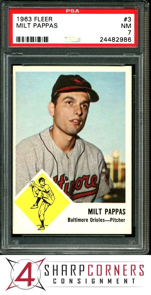 1963 FLEER #3 MILT PAPPAS ORIOLES PSA 7 SET BREAK