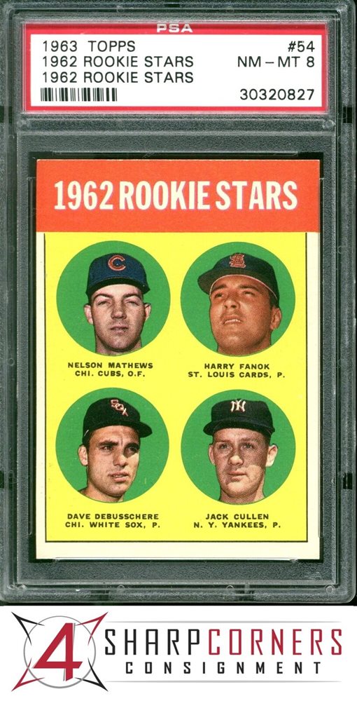 1963 TOPPS #54 DAVE DEBUSSCHERE RC WHITE SOX PSA 8