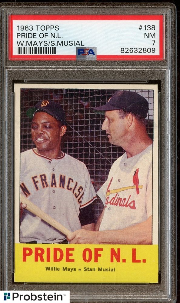 1963 Topps #138 Pride Of NL Willie Mays Stan Musial HOF PSA 7 NM