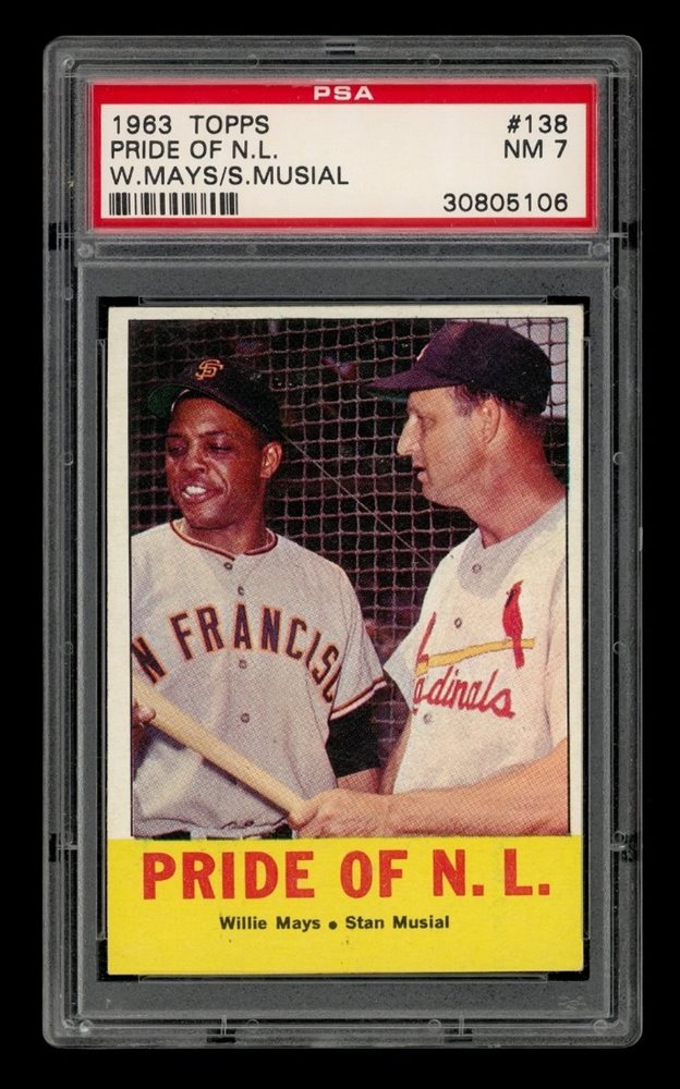 1963 Topps Set-Break #138 Pride Of N.L. W.Mays, S.Musial PSA 7 NM