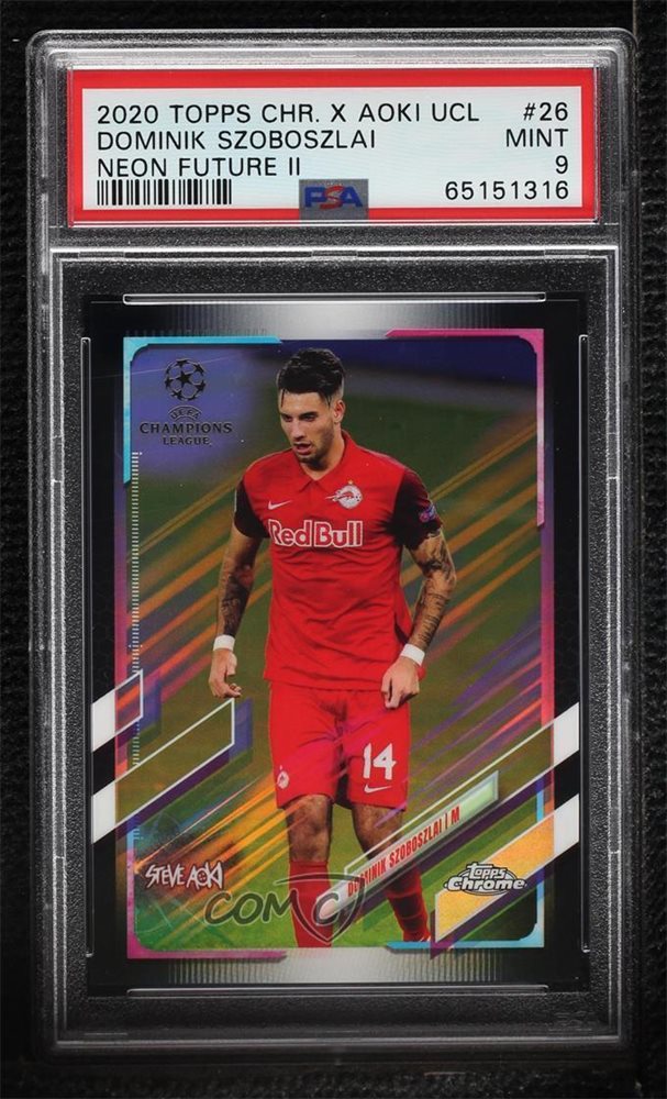 2020 Topps Chrome X Steve Aoki UCL Neon Future II 44/99 Dominik Szoboszlai PSA 9