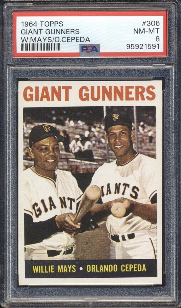 1964 Topps Baseball Giant Gunners w/ Willie Mays & Cepeda #306 PSA 8 GIANTS HOF