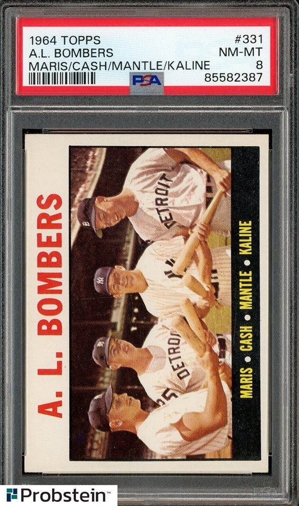 1964 Topps #331 AL Bombers w/ Mickey Mantle Al Kaline HOF Maris Cash PSA 8