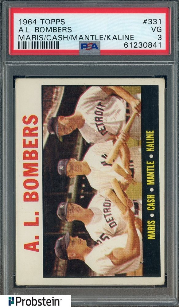 1964 Topps #331 AL Bombers Mickey Mantle Al Kaline HOF PSA 3 VG