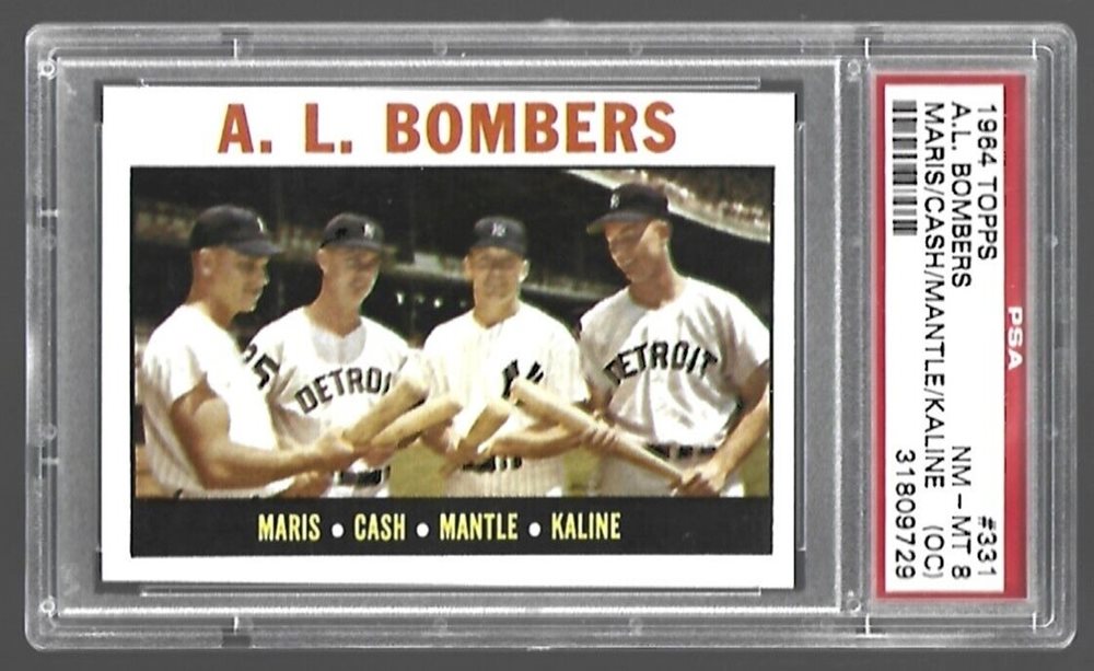 1964 Topps #331 A.L. Bombers (Mantle, Maris, Kaline, Cash) - PSA 8 NR MT-MT OC