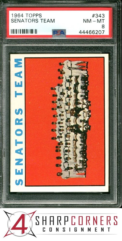 1964 TOPPS #343 SENATORS TEAM PSA 8