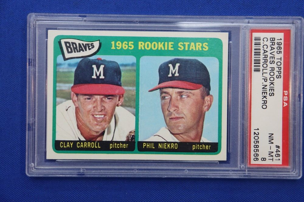1965 TOPPS ROOKIE STARS Card PHIL NIEKRO CLAY CARROLL RC High Grade PSA NM-MT 8