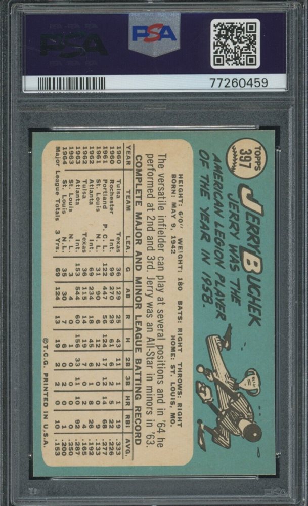 1965 Topps #397 Jerry Buchek St. Louis Cardinals PSA 9 MINT