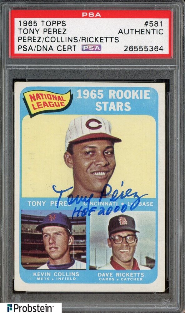 Tony Perez "HOF 2000" Signed 1965 Topps #581 RC Rookie AUTO Inscription PSA/DNA