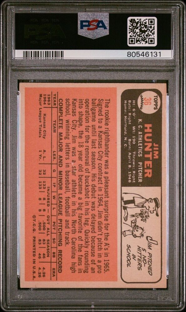 1966 Topps Baseball #36 Jim "Catfish" Hunter HOF PSA Graded EX 5