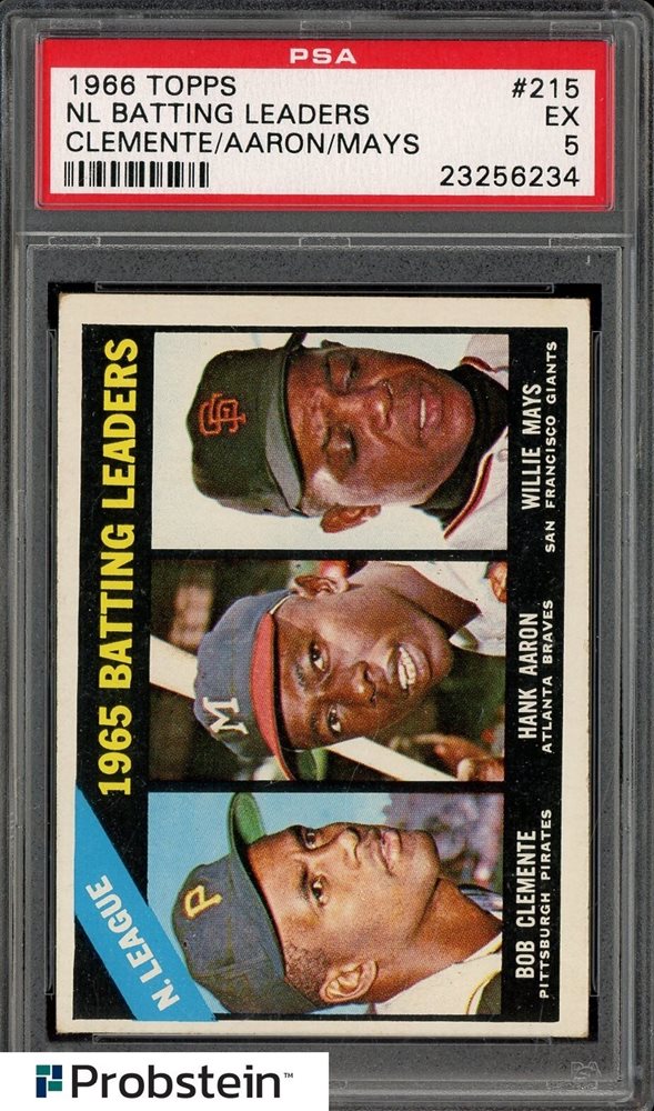 1966 Topps #215 NL Batting Leaders w/ Clemente Aaron Mays HOF PSA 5 EX